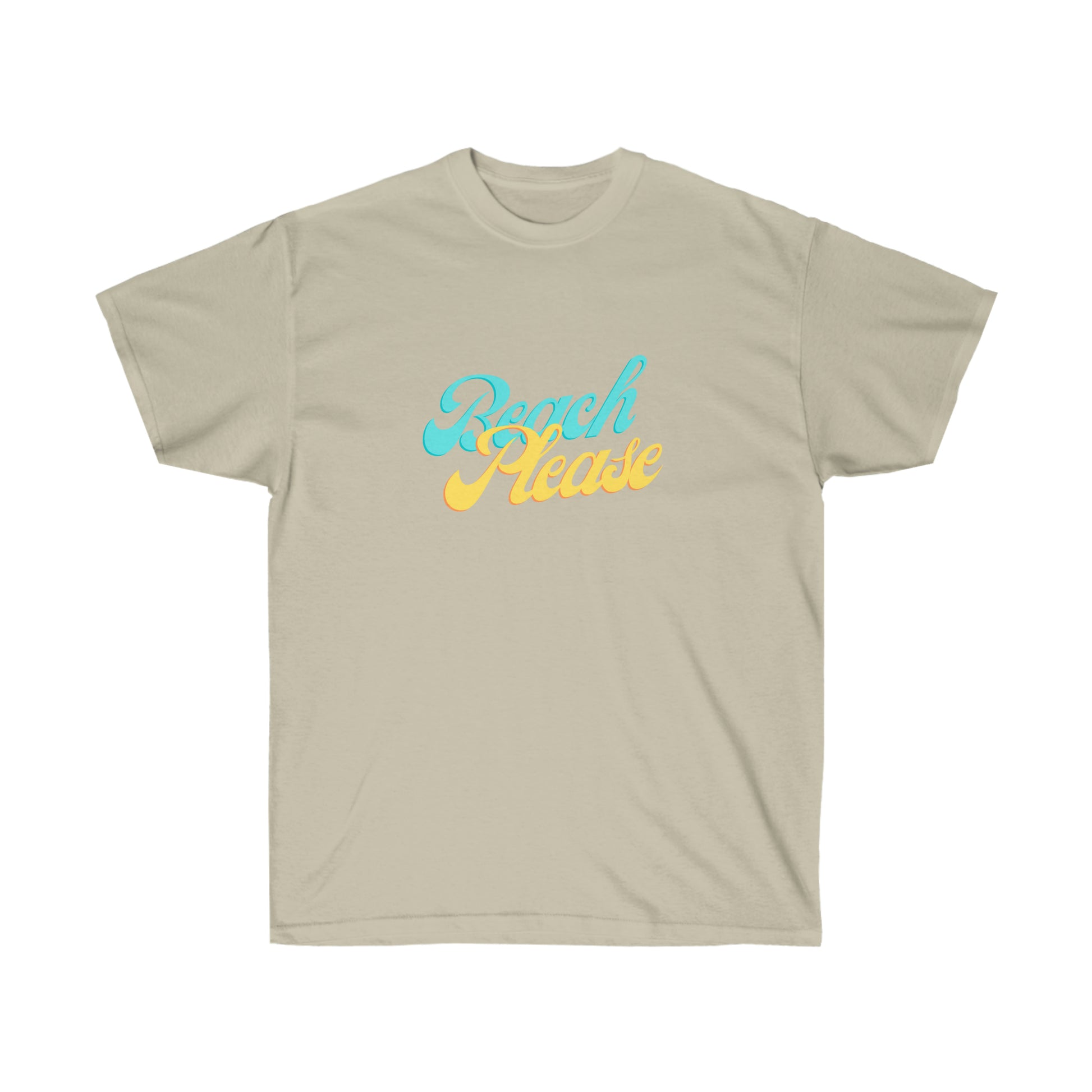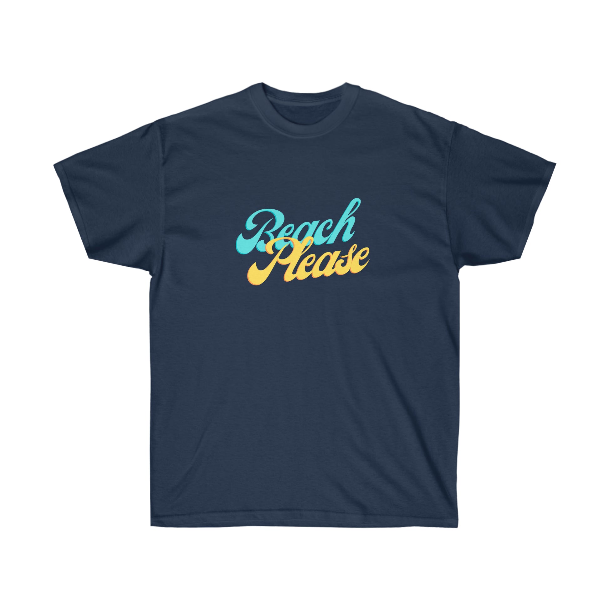 Unisex Ultra Cotton Tee Beach Please - Blue and Yellow